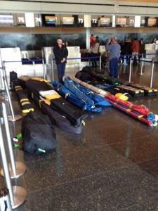 See the photos- The first is the giant pile of gear at Logan- this caused eye rolling and consternation among the staff (probably because Steve Madden looks pretty shady) but Eric can be incredibly diplomatic when necessary and he convinced them to load it all on the plane and even got a pretty good rate in the process! As always it was a strange feeling leaving it all on the floor to be carried off by total strangers into the behind the scenes chaos of Logan International…. Ugh.