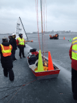 First of all the place was great- Lake Monona in Madison, WI. Look on the interweb ( ) for photos but take my word for it, racing with downtown Madison as a backdrop is pretty cool- and a far cry from the scenery we are used to out this way! Madison is an iceboating town and they didn’t disappoint. The ice was good and the launch area only deteriorated enough to keep things interesting….