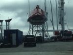 No matter what happens the line honors race is for second- COMANCHE already finished with an elapsed time of 1 day, 11 hrs and 50 minutes. Average speed 17.8 kts. Not bad for a soft-water craft! See the pics of her out of the water a few weeks ago, getting ready… Hopefully you can get a sense of the scale of this boat- She’s what you might call a big boat, 100 feet long, 30 feet wide- you get the idea.