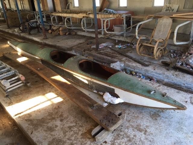 While we wait to see what the weather event will do for / to the lakes over the next 24 hours take a moment to read the following email and take a look at the photo. This gentleman is psyched to have this boat and is wondering what exactly it is! I have to say I’m also curious as to what the building was used for.