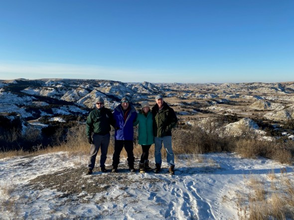 Eric, Eben, Karen, and T trying their best to be good while passing through the Bad Lands of ND Sunday.