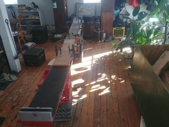 Lee Spiller saw the photos of Valentine and Truesdell working on planks in the living room and couldn’t help but send his own along for us- He says: