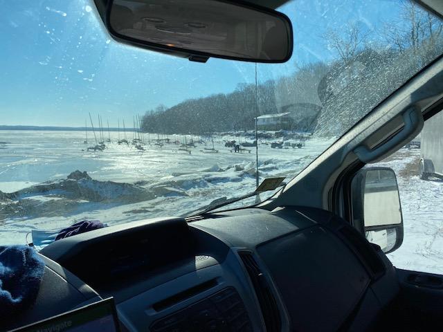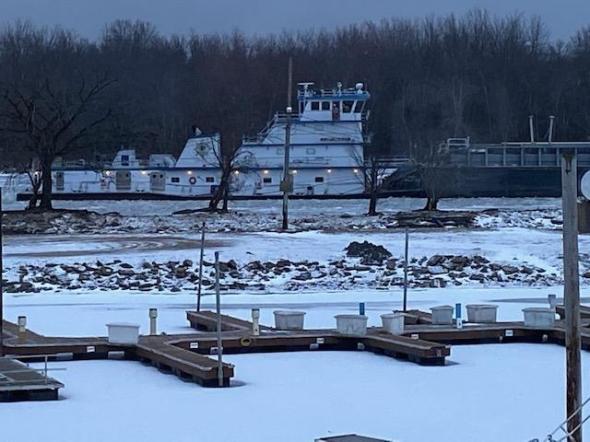 Tug and barges going by the hotel near the lake. Felt right at home!