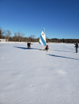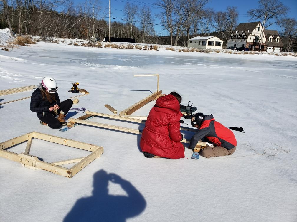 Spectators and fellow sailors shared in the excitement and enthusiasm of seeing several youth sailing on Quaboag in Massachusetts and Watuppa in Fall River, MA. Chad Atkins’s son, Mason, was rounding marks in his Opti DN. Brian Langley’s teenage daughter, Bella, was cruising the lake her mini-whizz. Bob S. and Bob Haag helped a group of three girls from scout troop 1175 from Simsbury, CT build their own ice boat on Quaboag.