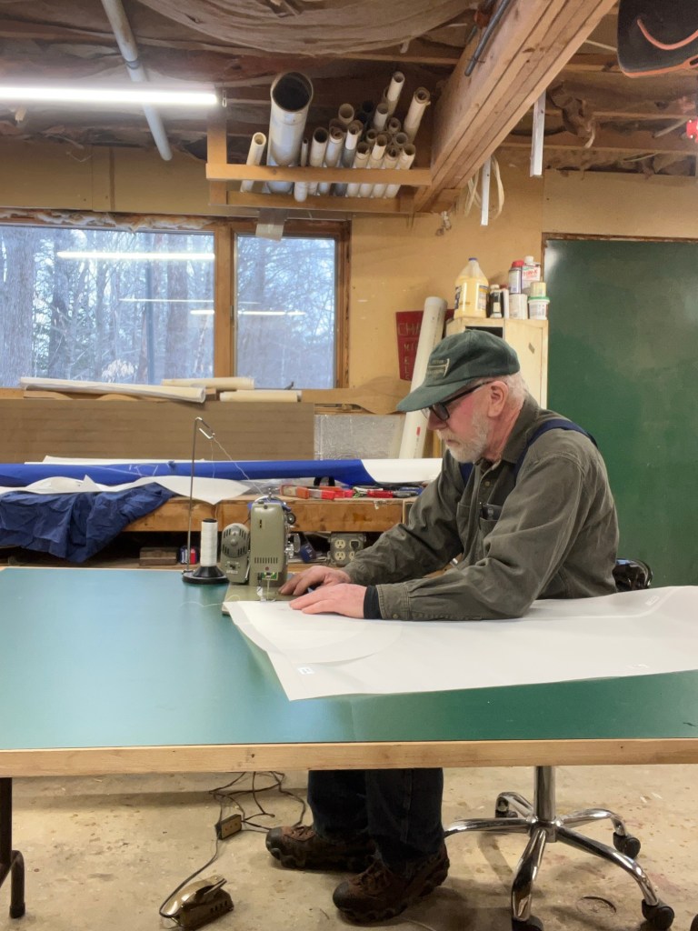 This season found me refinishing my super DN after 30 some years of use and abuse and sewing a couple of new sails. One for my wife’s Skimmer, and a second for my friends. (Sailrite gave a good deal if I bought 2 kits. Okay so I didn’t lay out the sails myself, although I do have the book showing me how.) so with the old office counter top revamped as a sewing table, two new sails were completed, in time for the last sail of the season. They’ll be all set for next year as long as they keep the mice out!