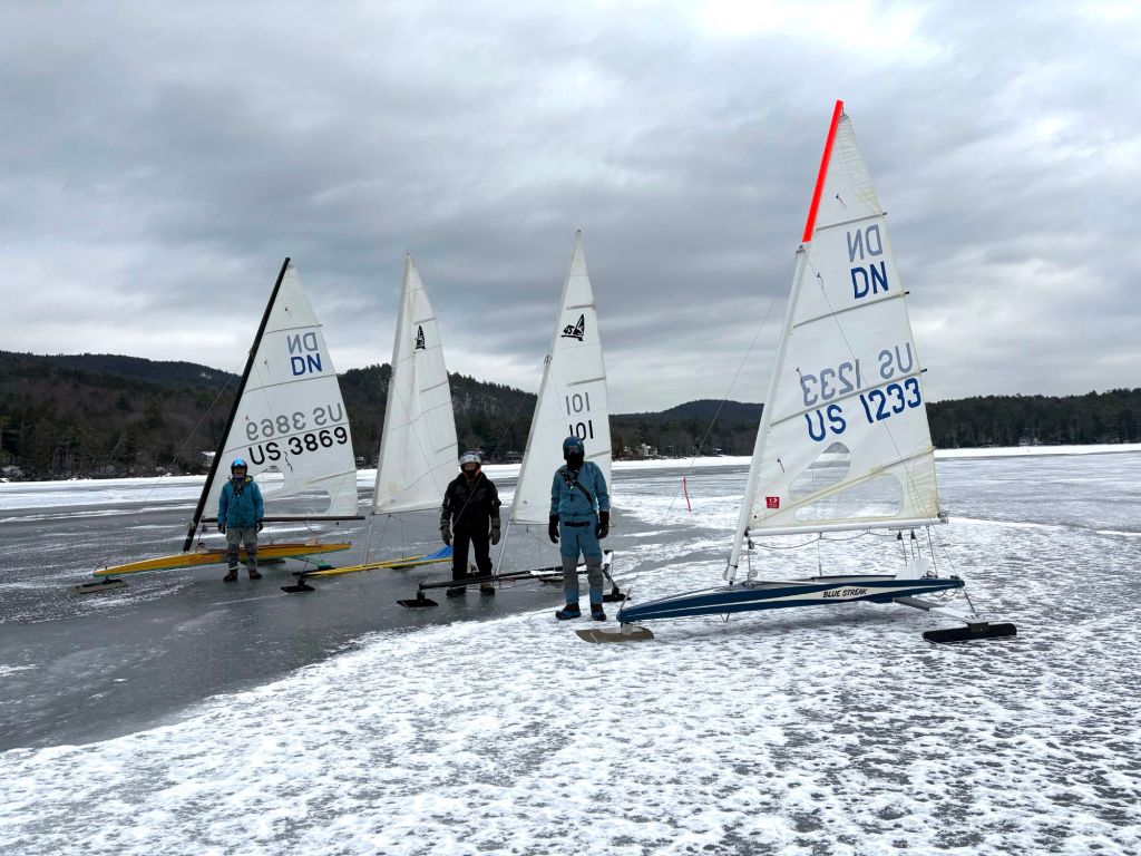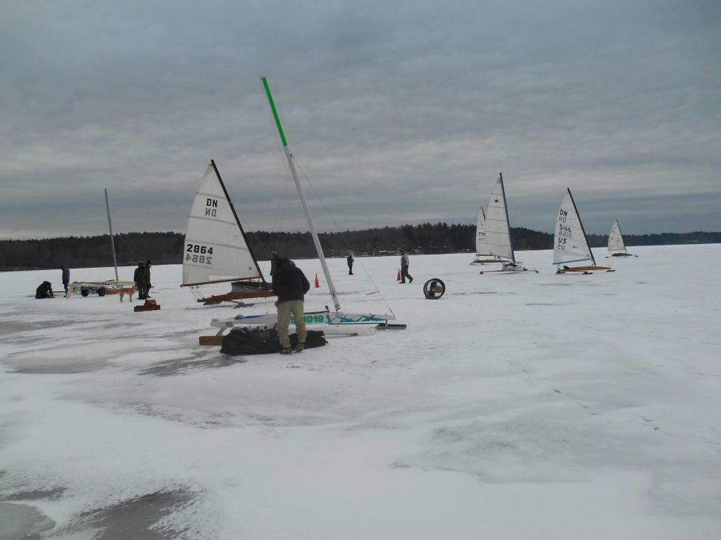 Nine sailers showed up Wednesday to sail Quaboag, great wind all day,the snow was soft and wet, no problem sailing through it.