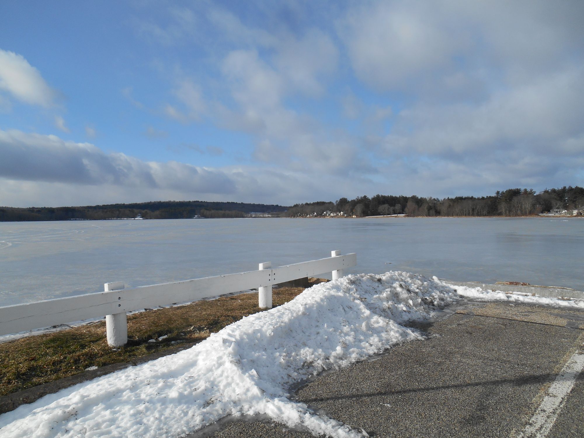 Massasecum is also rough, but sailable. A lot of crud from partially melted and refrozen snow and slush / tire tracks from ATVs. Possibly some remnants of smoother ice further out. Ice is 9-12 inches thick per fishermen.