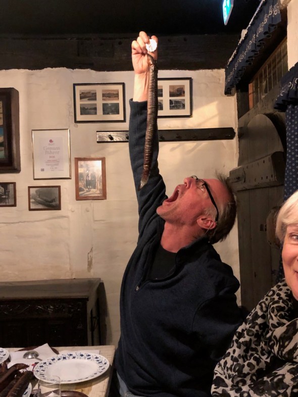They have a local spirit here that they drink in big spoonfuls and also use to wash the eel oil off your hands at the table!