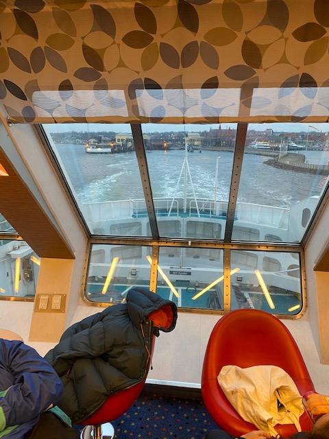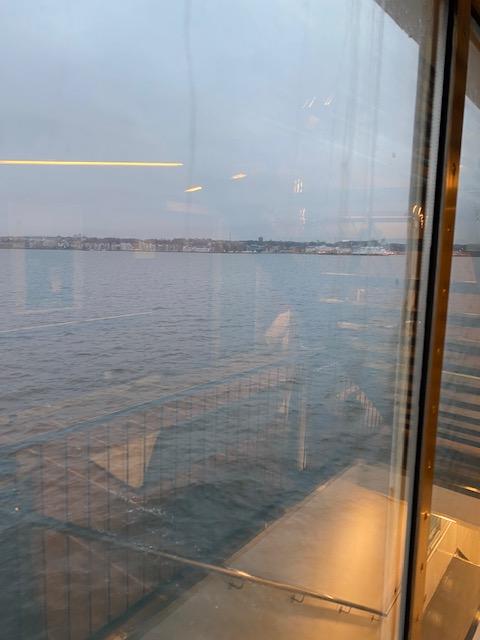…at the north end of Denmark you drive into the ferry to Sweden. Takes about 30 minutes or so. This is leaving Denmark behind.