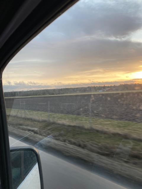 Sunrise on the Swedish highway