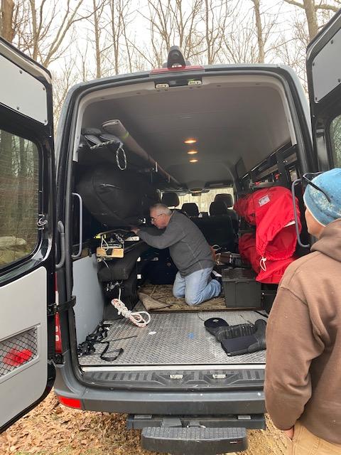 Loading the gear into Jeff Kent’s amazing Sprinter van.
