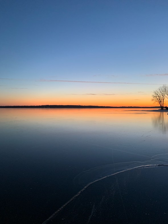 This is Puckaway Lake in Princeton, WI yesterday evening…. may have been hit with some snow overnight but still, not a bad looking piece of ice…. stay tuned