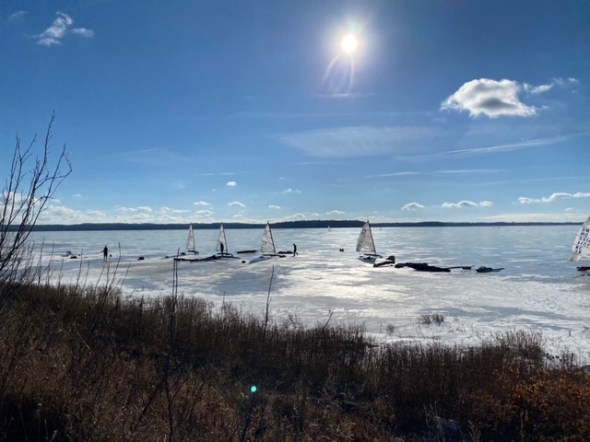 Good breeze, nice ice, seven races each in three different fleets and a whole second course set up for new sailors. Awesome day! Thanks to all who are making it happen….