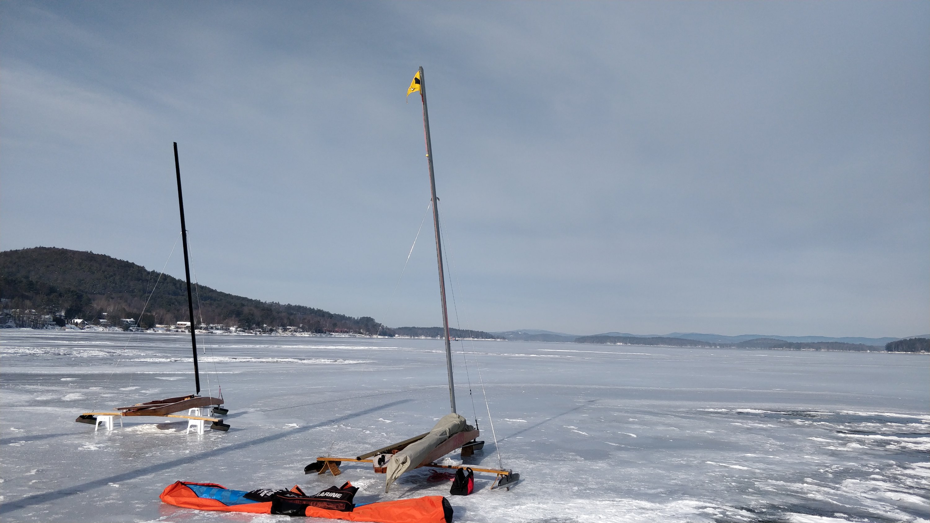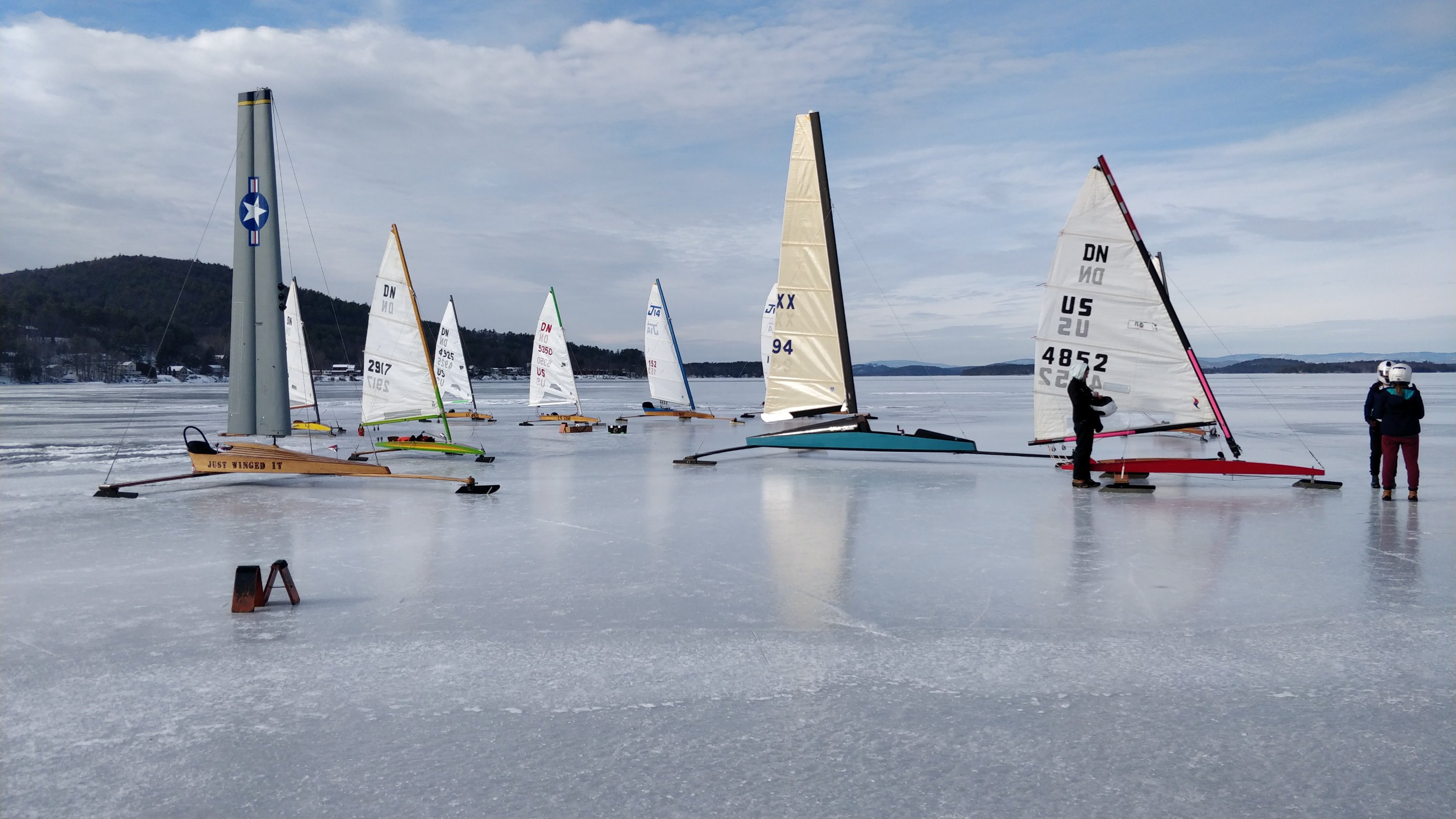 Nature delivered the ice. Invites have gone out for days and today they came. Ellacoya was packed. Packed with 30 iceboats. Sailors came from all over New England, New Jersey, Long Island NY and four boats from Canada. People hit the ice but were unrewarded, the ice was smooth and fast and th wind never came up. As most of us know the next best thing to iceboating is talking about iceboating and of course, that is what we did. Remember not all iceboating stories happen on the ice.