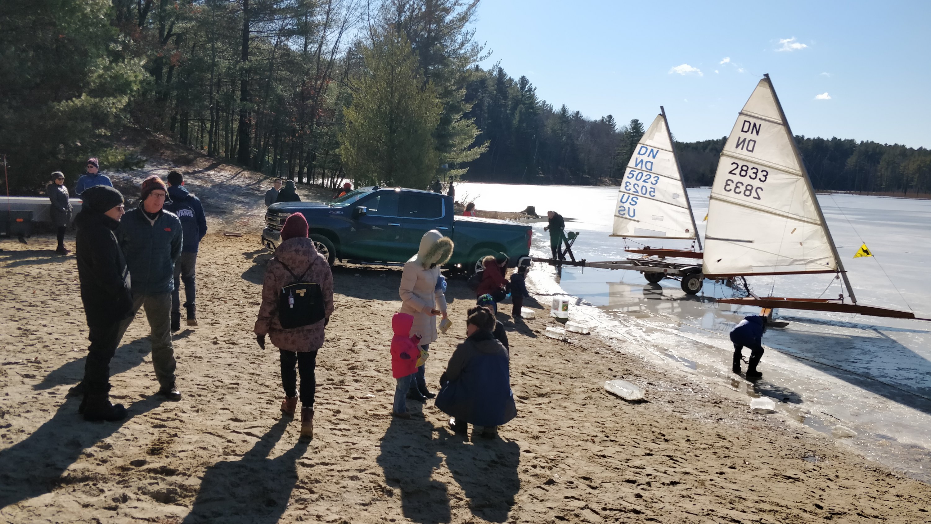 Quaboag delivered one of the only games in town, it had a wonderfully smooth surface. There were a number of boats, multiple boarders, and wings, high tech and low rigs all sailing together. There was a huge range of experienced, new and newer sailors all doing what we love best. It was great to see Bill Converse one of our Sr members on the ice again. Boarders had a heavy presence and were ripping it up throughout the day.