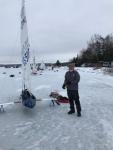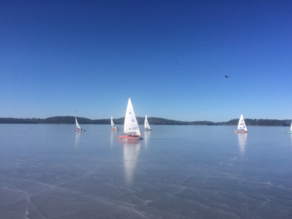 Day one in the books- Ron hanging in there pretty well, the rest of us doing what we can! Fleet is deep and talented here but we are learning a lot…. Ice is good, light to medium breeze, and cold temps- everything we love! Click here for results: http://icesailing.org/