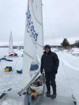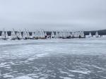 The Nova Ice Yacht Club sailed the NS Champs/AKA Snelly cup on Saturday Feb 17 on beautiful fast ice at MushAMush Lake. Races 1-2 were very exciting in breezy air calling for the MS1 sail. Races 2-3, a bit lighter calling for the ABSS sail and races 5-6 the FO1 sail was best for the lighter wind later in the day. Everyone had their moments of glory and especially for Clyde Childs who scored a second place finish in race 3. After race 4 we took a break to enjoy great hot food and snacks provided by Claudette, we were well fed and watered and continued on to races 5-6. Races 5-6 turned out to be good light air practice. In races 5-6, positions on the race course were traded a few times due to shifting wind conditions with the outcome determined in the very last part of the downwind leg to the finish line. It was a great day of racing on Lake MushAMush.