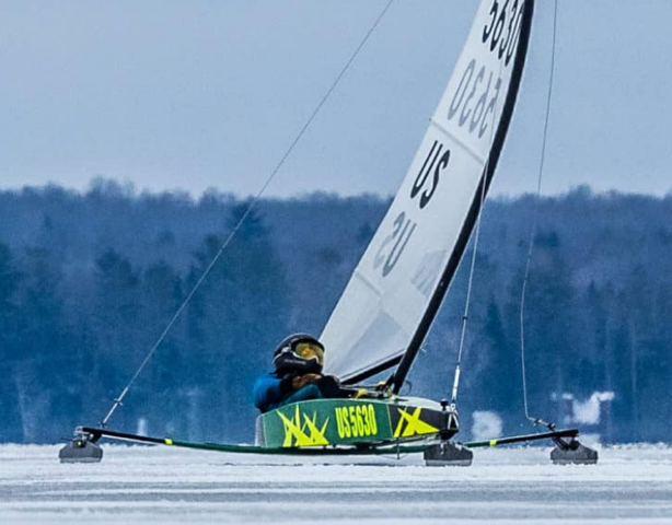 Bonus Fact: The beautiful hull seen in the photo is none other than “Yellow Ice”. A lightning bolt of sorts assembled in the secret basement laboratory of Steve Duhamel – Northwind Iceboats.