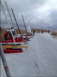 This set of photos by Cathy Firmbach is from up by the weather mark during the windy races that would have been the NA championship had we not been blown off the ice later that day- Thanks Cathy!