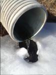 Saw this cool boat in the parking lot- love the stem timber made from half a piling. Also a few guys ogling my sweet CSI sled, and that telltale sign of spring, a drain dumping melted snow into the lake…. Not a good omen!