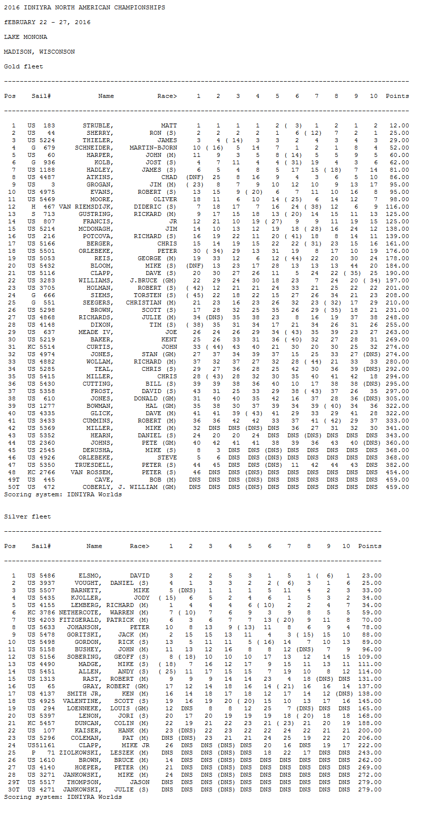 2016 DN North American Championship Results