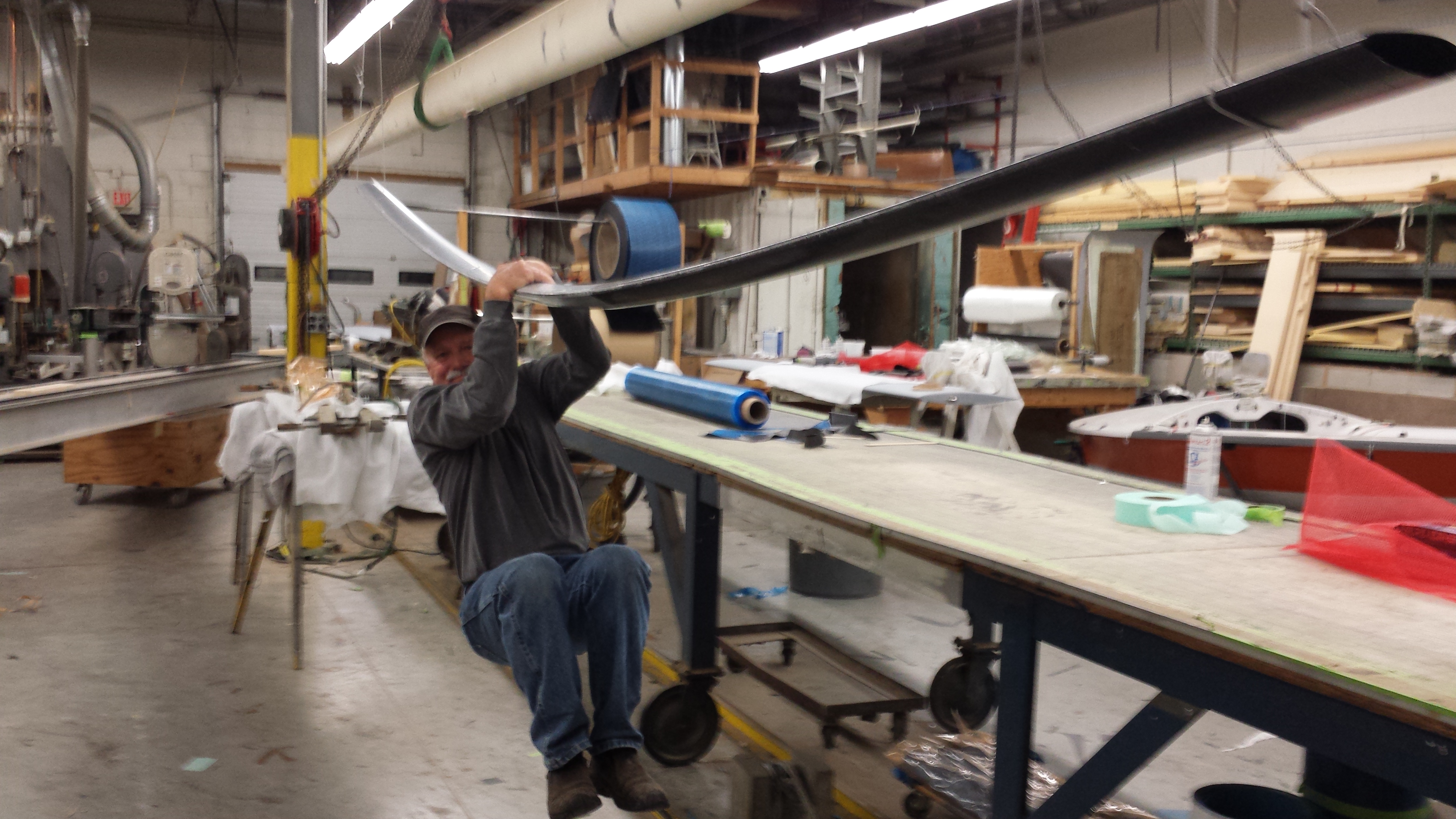 Here we see Steve Madden risking life and limb (or maybe just a bruised rear and some embarrassment) testing out the deflection on the latest DN mast from the twisted yet brilliant mind of Jeff Kent.