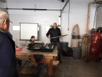 I was visiting my parents this weekend in Geneva, NY and had the chance to attend the Kewasa area iceboaters event with my Dad, Howard Sabin (he was a member of the Irondequoit Bay Iceboat Club for many years, DN 3424). The venue was the Finger Lakes Boating museum in Hammondsport. After walking through the museum area where many beautifully restored local boats were displayed we went into the museum’s working shop.