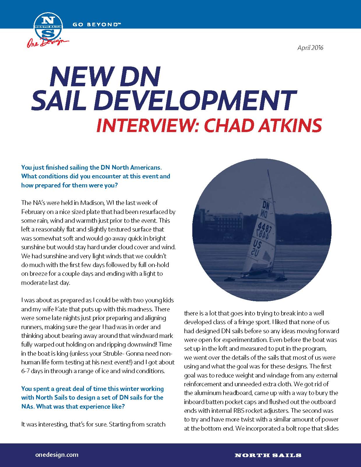 While most of us are happy to buy the same sails used by the top of the DN fleet from a few of the usual suspects, one of our own Chad Atkins has been working directly with North Sails. Read all about it in his interview with North.