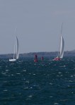 He was lucky to catch two 12 Meter yachts cruising by- you know the breeze is up when they don’t bother with mainsails!