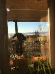 The view from the lodge- amazingly quiet in the morning- walking down to the lake- unloading the container- Eben raising the flag at opening ceremony. We wanted him to sing the national anthem but he opted out for some reason-