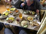 Our German friend Torsten Siems telling a fish story, tuning notes on Jost Kolb’s boat (cash reward for whoever can de-code it all), Dideric gettin’ down, and lunch on the ice.