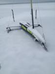 Sailing onto thin ice for some distance and breaking through is more complicated. It is important to get out, spread your weight out on the ice by not getting up, and claw your way back from whence you came on thicker ice. A moment or two for orientation is in order here. Extraction of the ice boat can be complicated needing ropes, boards, boats, etc. If an immersion suit is available and seems useful it should be used by someone familiar with its use, practice is needed, preferably in the summer. Preparation goes a long way here. Early and late in the season I often carry a 12 foot plank on the truck, usually used for getting on the ice at a thin edge. It would be very handy for thin ice rescue. A wind surfer hull with ping pong paddles, the paddles having spikes on the other end of the handle, is advised by Leo Healy and sounds pretty good. The NJ ice boaters have a tin “john” boat on retractable trailer wheels that is hauled to the ice by car and on the ice with an ATV. But the boat/trailer can haul all the regatta paraphernalia out to the race site including the wind break for the race committee, hot meals, lawn chairs, etc. More things to play with.