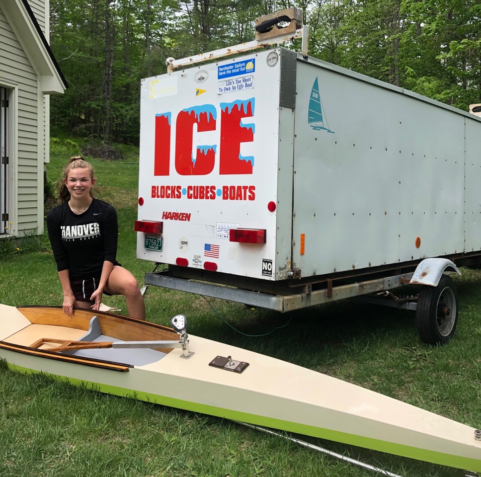 Finally, after a few shop minutes here, a few minutes there, the hull I bought on a whim at the fall trade/banquet (two years ago) is cleaned up, re epoxied, painted and ready to go for a loaner. My daughter has expressed interest in it as well (hooray!) so if you spot the trailer and the boat is inside feel free to ask about setting it up and getting a few pointers. NEIYA is about the most welcoming group for new sailing enthusiasts young and old and there is always plenty of advice for new sailors. If you spot this COVID escape rocket ship on the ice and have never sailed, don’t have a boat, or just want to give it a whirl please do just that. Simply ask for the keys.