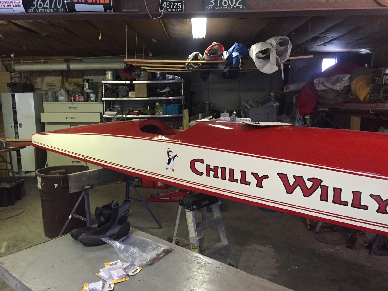 Another swap meet/annual buffet purchased-on-a-whim barn find that will hopefully see the ice this winter is this two seat 40’s era Mead skeeter. Some of you may recall loading the old ship wreck onto my truck roof and thinking it would definitely NOT still be up there when I got home…. but it was! And it is beautiful now! As many of you know I have much more enthusiasm for ice boating than I do banking abilities and with the help of others in the NEIYA I was able to acquire the hardware I needed, a set of runners, and an updated mast/sail combo that should raise some ice chips for those behind us! If you spot Chilly Willy on the ice (formerly know as “Scat!”), a ride is yours for the asking. I rebuilt it specifically to give others their first rides.
