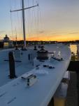 Sixth is looking in from the stern, traveler track and steering wheels