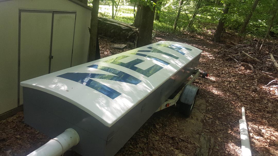 The short story about the boat is that it was offered as is, free for the pickup by a professor colleague of mine. It was in Pennsylvania where it had sat unused for over a decade…and no one knew its previous history. It was complete shy some fasteners and a broken batten. The runners were horribly rusted as were all the non-SS nuts and bolts. The sail had no numbers or emblem on it although I could make out the image of its number, “2013”. I stripped off all the white paint on the hull and discovered only a small amount of delamination near the bow…fixed that and repainted with forest green polyurethane. Polished all the bronze fittings and stained SS, replaced all the rusted fasteners with new SS, removed all the rust of the steel chocks and steering pull-rods and painted them black. Completely stripped the varnished spruce mast, re-glued some lose mast top pieces, and refinished with 5 coats of varnish. Stripped the paint off the plank and discovered a beautiful wood grain. Again applied 5 coats of varnish. Carefully copied the old outlines of the sail numbers and logo, cut out new ones from green self-adhesive sailcloth I got from Sailrite, and put them on along with a bunch of tell tails. Found the 2 pieces of the top broken wood batten and was able to bond some very thin tapered wood patches over the break…doesn’t seem to upset the camber too much. Spent about 3 hrs on each of the blades removing rust, and grinding in new edges. Also stripped and refinished both the beautiful wood tiller and unusual hand brake.