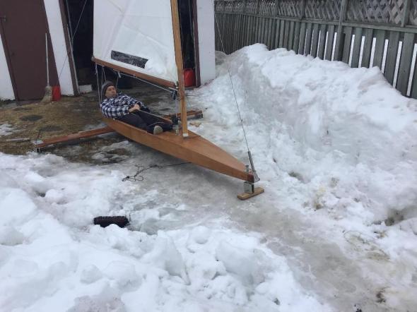 Mike loves sailing iceboats and is looking to get some more people involved by acquiring a loaner boat for friends and potential new iceboaters to sail. To that end he’s picked up a vintage DN (early 1960’s maybe?) and is prepping it for newbie use.