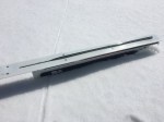 First of all, I grooved a long slot in the skis in order to use my Sarns bullnose runners and to have them go through the ski. The runner exceeds 1/2 inch under the ski. I used a piece of HDPE (High density polyethylene) to double the ski, but after all, I am not sure it is very useful. Maybe only the ski could be good. I used this HDPE because it is very strong, and very slippery on snow or crust. But a ski is also very slippery !!