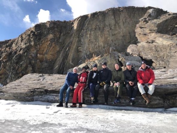 From there we walked around edge of the island to seek shelter as the winds really picked up. We stopped in a beautiful spot with an amazing view of the lake. The rock outcroppings were covered with ice and Dideric and Marci surprisingly produced a bottle of Baikal vodka and glass shot glasses. We all briefly spoke about how fortunate we are to sail in Baikal and to be together with friends from around the world.