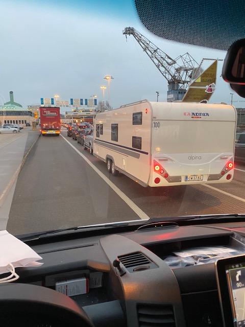 …at the north end of Denmark you drive into the ferry to Sweden. Takes about 30 minutes or so. This is leaving Denmark behind.