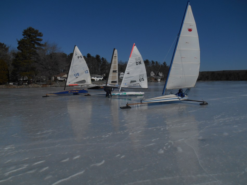 Okay, so some of you have been on the ice already while the rest of us are waiting optimistically for that any day now moment to come. Many new comers who have just acquired a barn find or new to you boat, may be faced with the fact that the runners may not be all that sharp under those layers of rust. If you have some simple wood working skills and a belt sander, you can bring those blades back to life. Obviously the jig is geared for plate runners. Insets should have a more qualified person and device for that race quality edge. With hours of practice and a good light box, I have done a reasonable job putting a sharp edge and rocker using this set up. The rig is simple using a piece of 4×4 squared off, and scrap plywood. A few bolts are used to allow adjustments to get the edges parallel and even in height. The distance between the edges should be wide enough to allow the sander to sit flat and level but not slide off. I used a couple different sanders and they all seem to work with this setup. Warning! You want to remove the bag so sparks won’t set any residual sawdust on fire. I use belts that have passed their useful life for wood. Different grits can be used depending on how much you need to grind. I find a used 120 grit gives a pretty good final edge. Honing would be the final step if you feel you need that mirror image for that little extra speed.