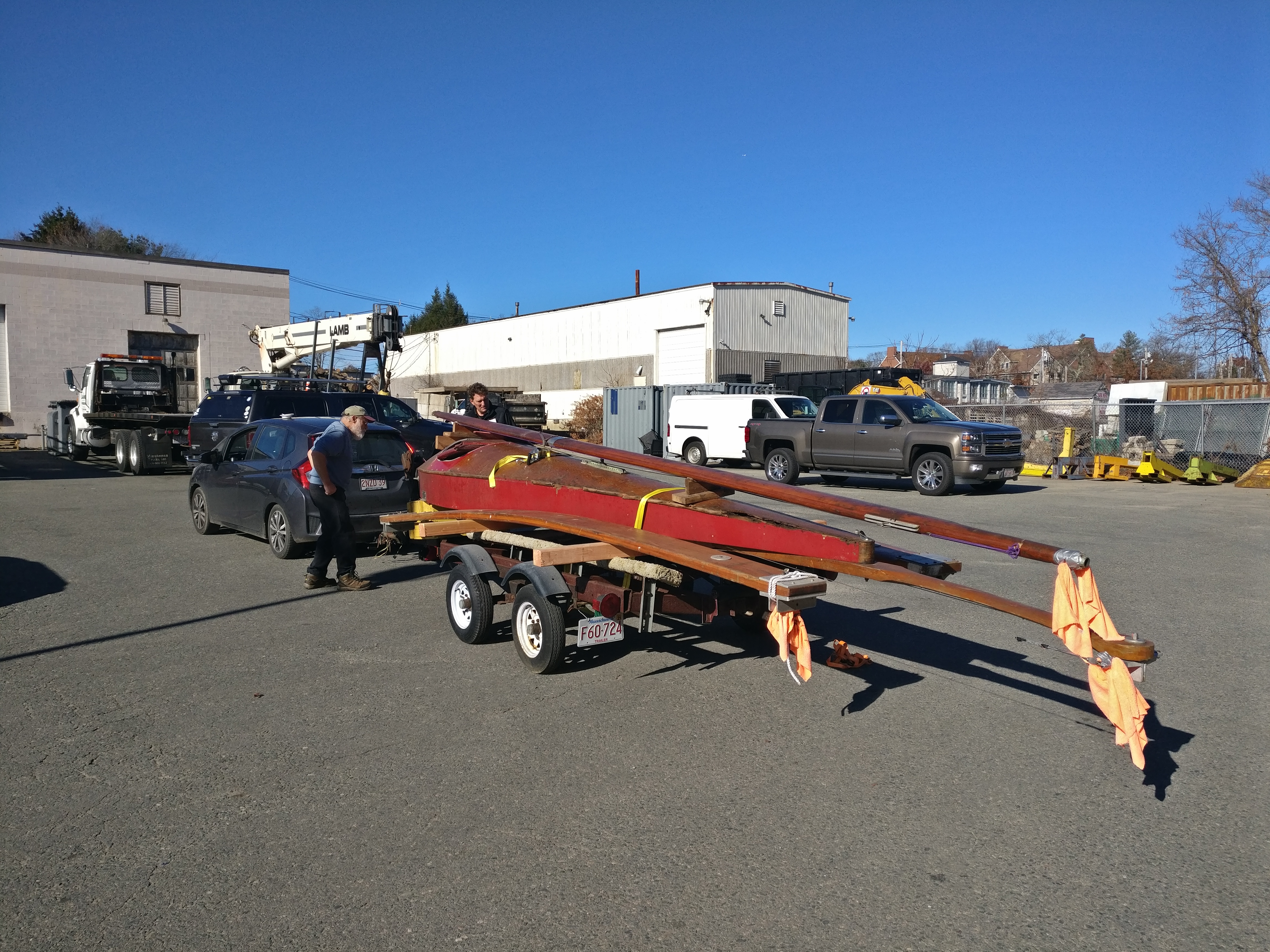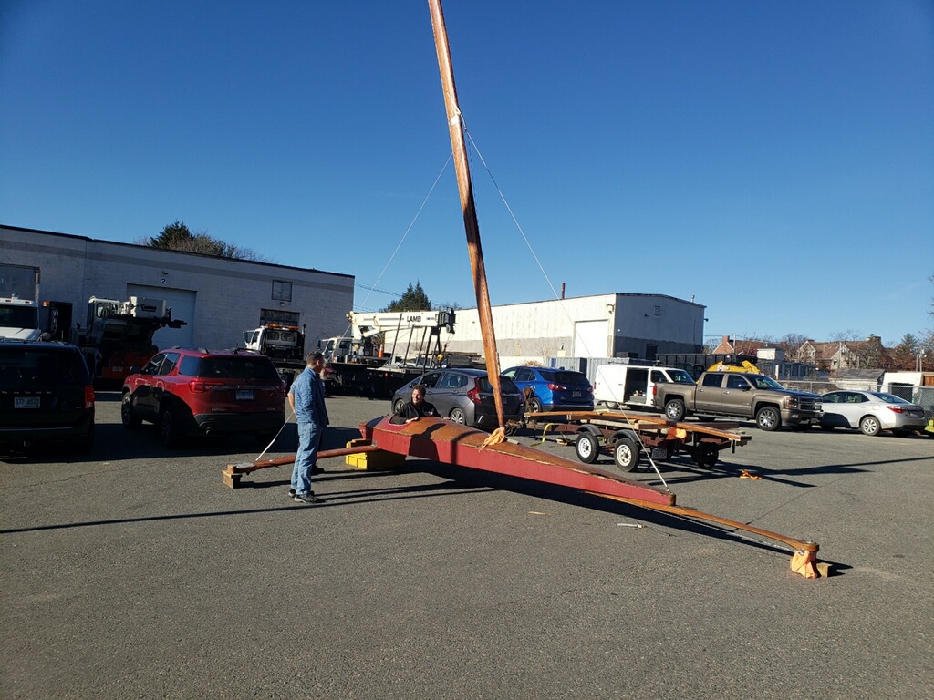 Six ice boats and a land sailer were rolled into the shop. The Yankee class Skeeter’s mast was just too tall for the ceiling and was moved to the back lot to be surveyed and set up. Paul Zucco took charge of getting Eddie’s Yankee together for the first time. Eddie, good luck with your new boat and see you on the ice.